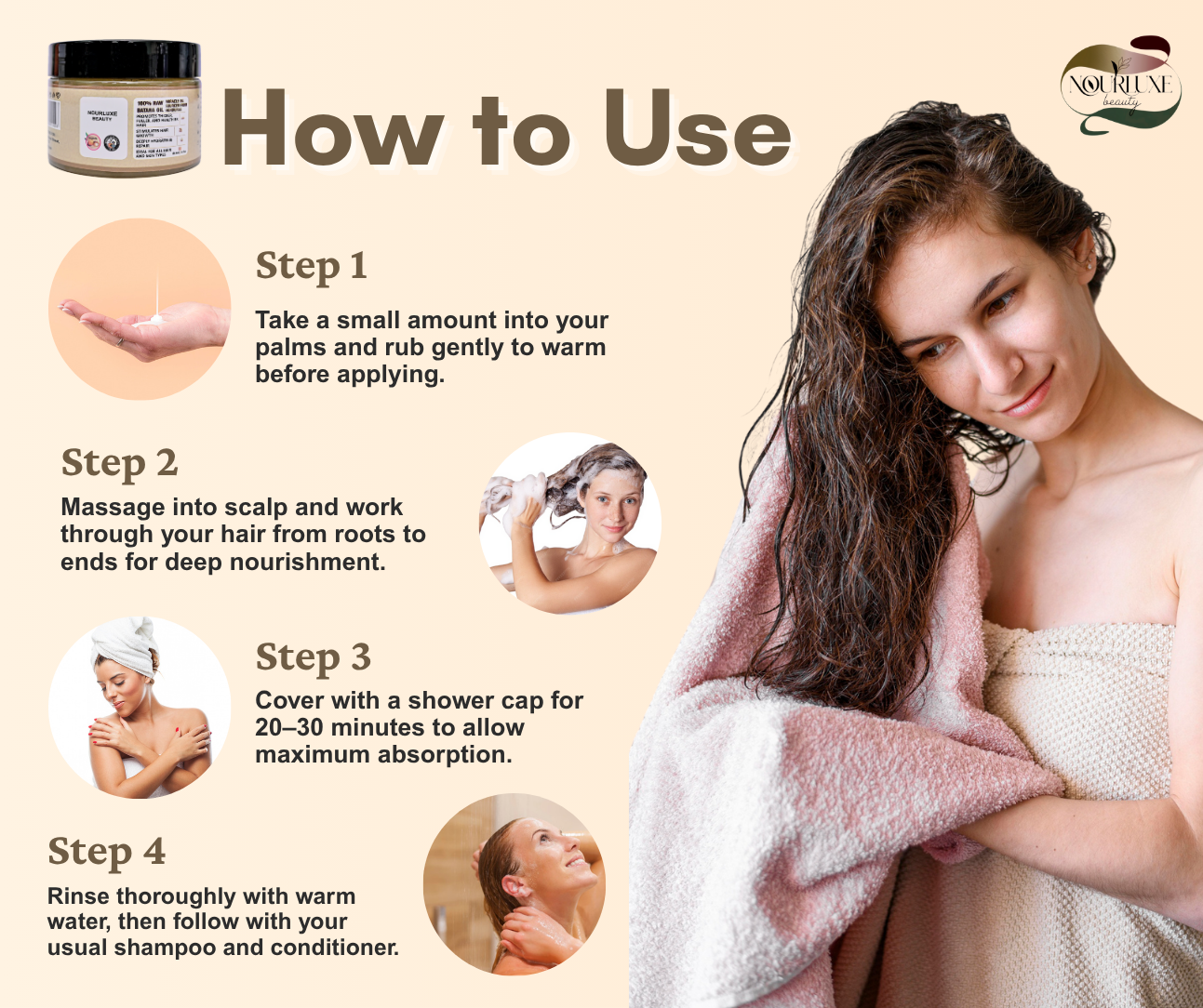 • Easy to Use – Warm a small amount in your hands and massage into scalp, hair, or skin. Leave in for deep conditioning or use as a daily moisturizer for long-lasting hydration and protection.