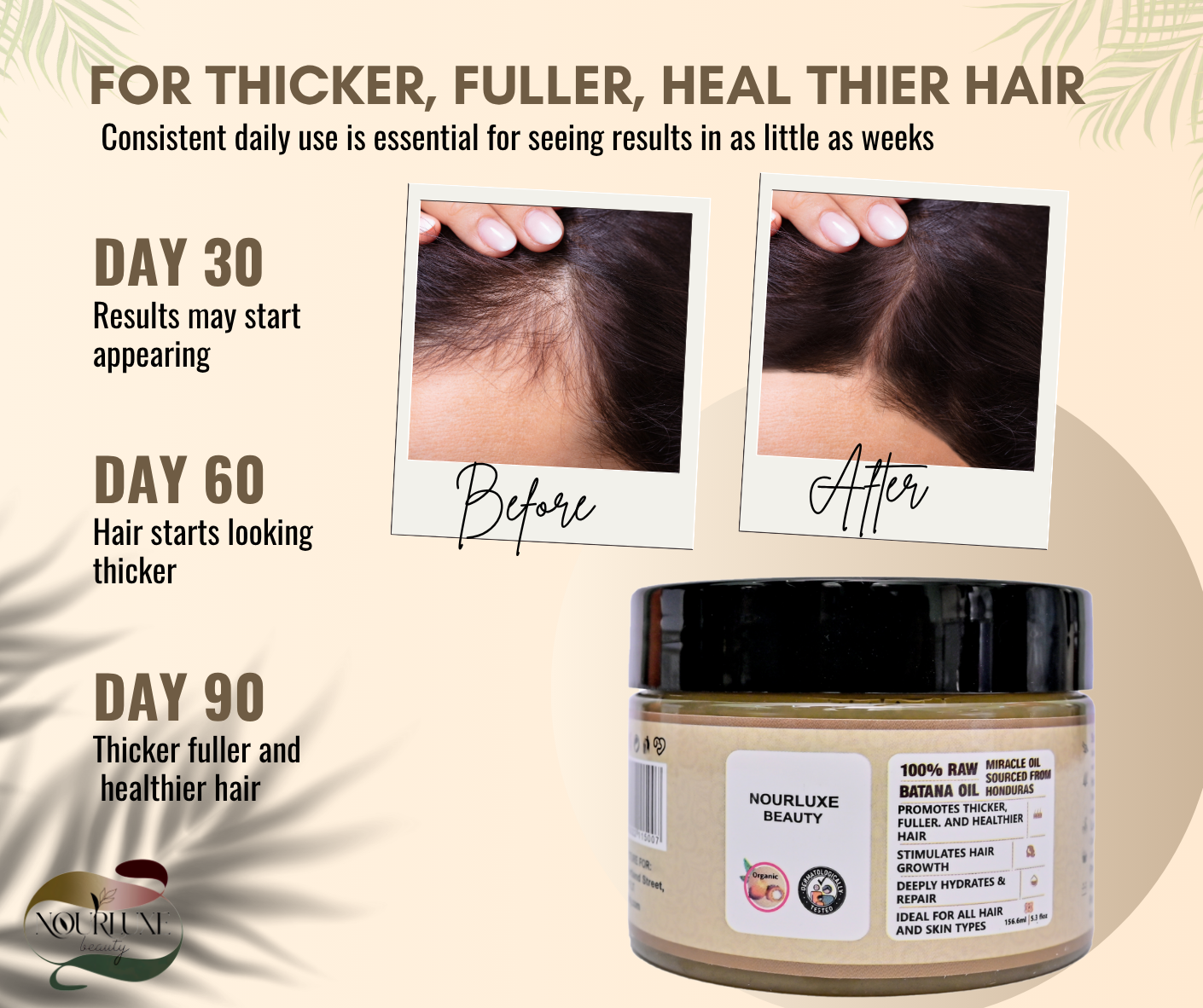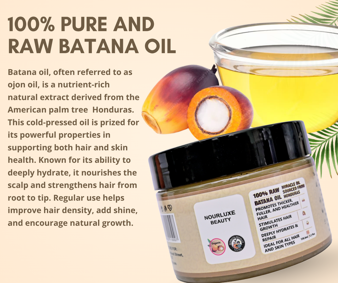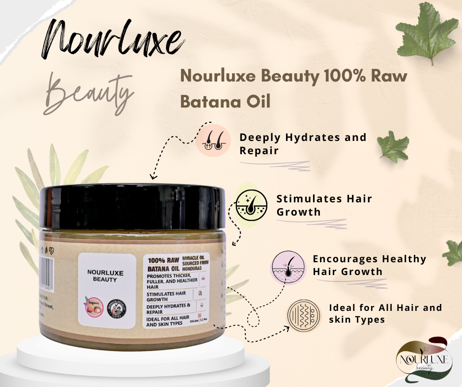 • 100% Raw & Authentic Batana Oil – Sourced directly from the rainforests of Honduras, Nourluxe Beauty Batana Oil is pure, unrefined, and naturally rich in essential nutrients. Free from additives, it delivers the full power of this miracle oil in every use.